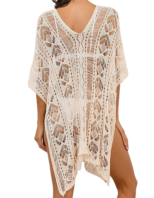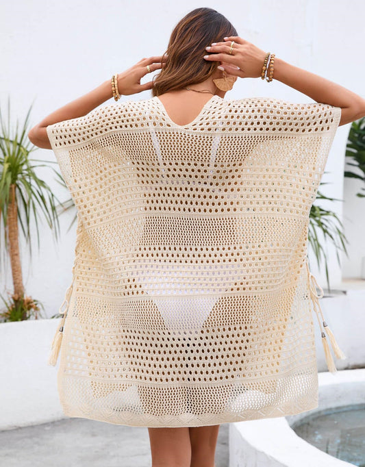 Women's Short Sleeve Hollow Out Loose Swimsuit Cover Up