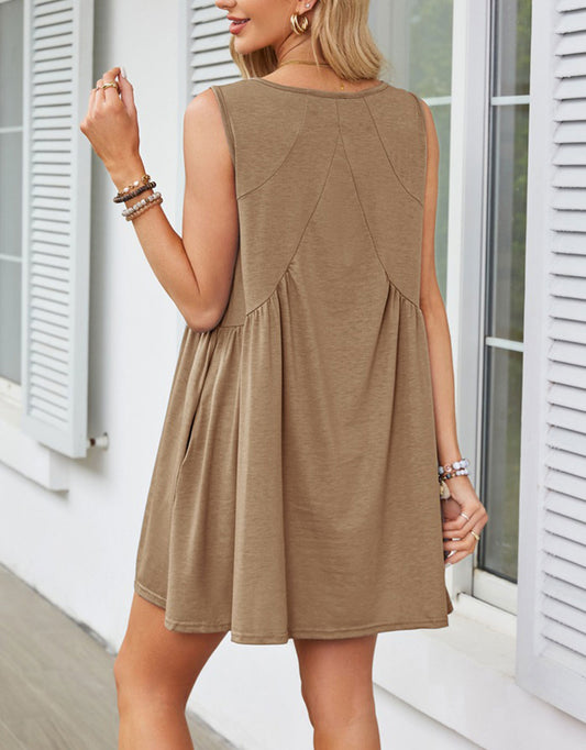 Casual Summer V-Neck Pocket Mini Dress