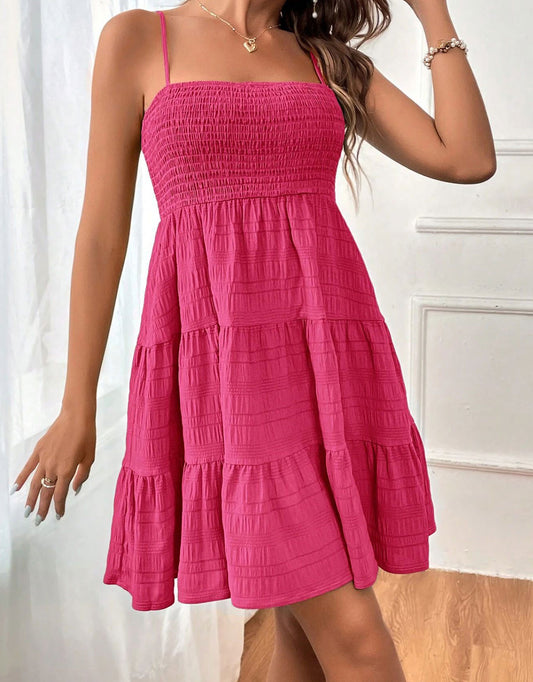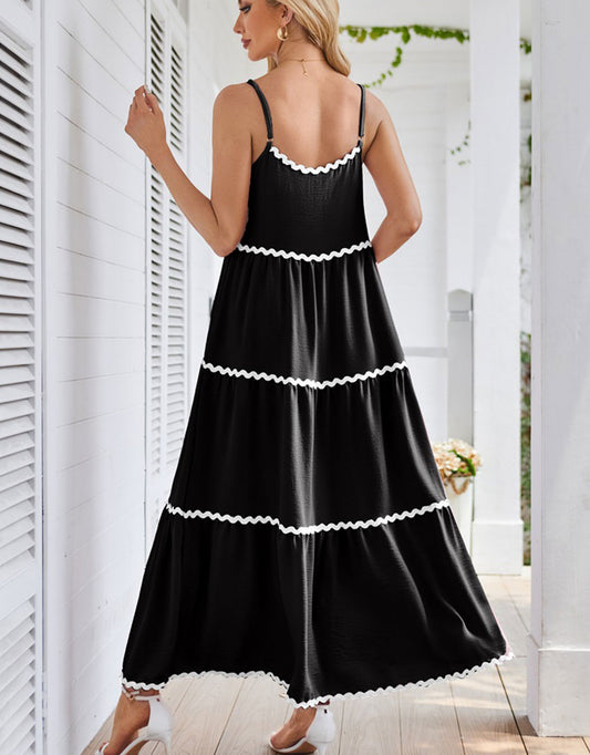 Sleeveless Spaghetti Strap Lace Layered Pocket Dress