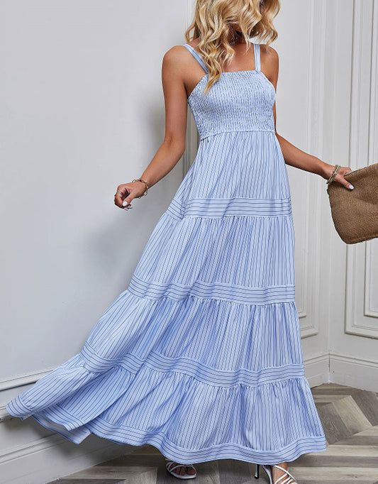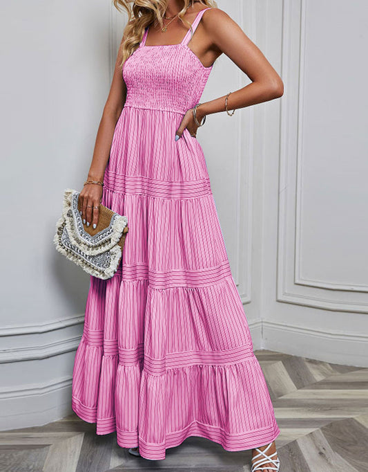 Suspender Sleeveless Vertical Striped Satin Midi Dress