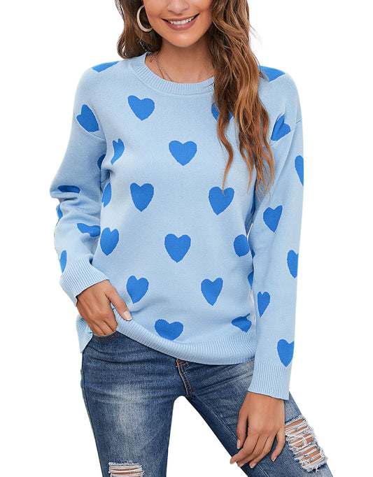 Cute Heart Pattern Crewneck Knitted Pullover