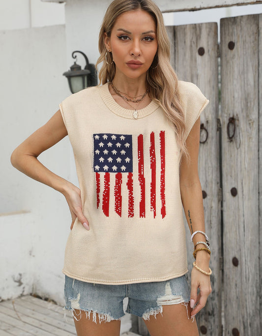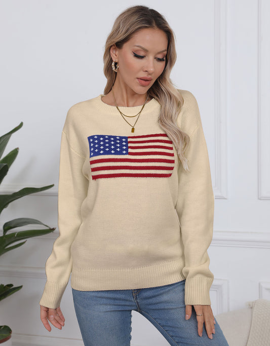 American Flag Loose Long Sleeve Crewneck Sweater