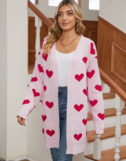 Cute Heart Long Sleeve Cardigans Coat Outwear