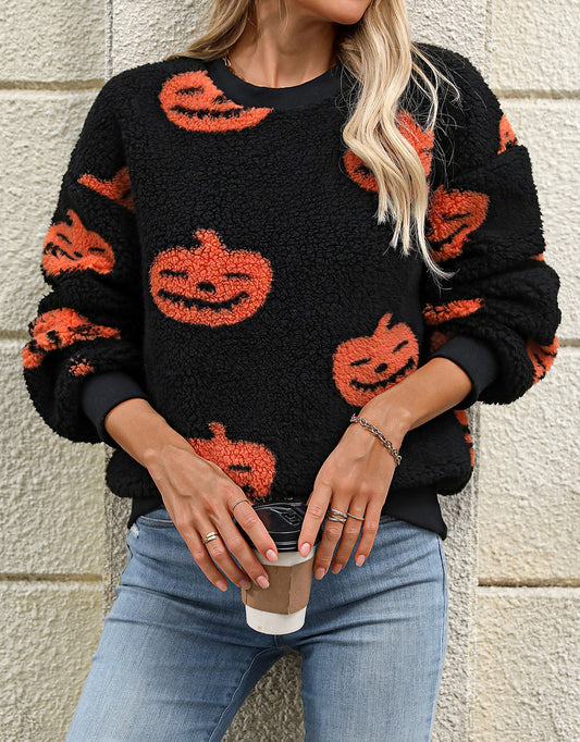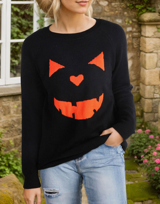 Halloween Thickened Cashmere Long Sleeve Evil Pumpkin Sweater