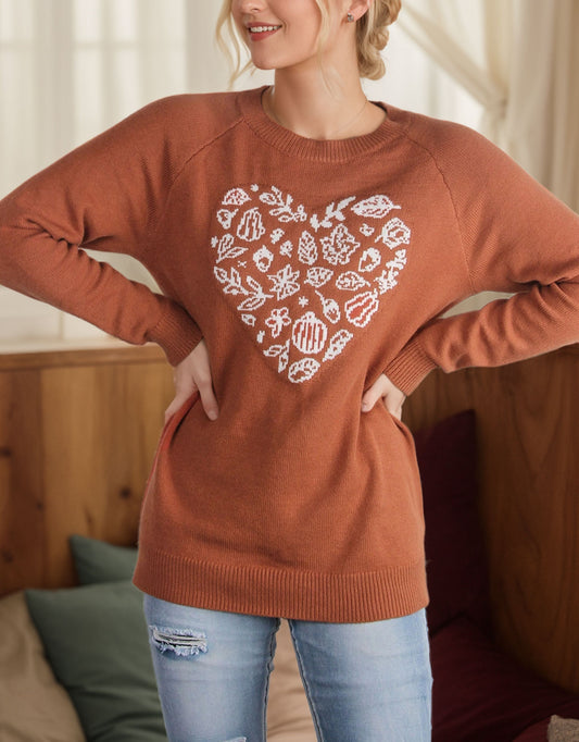 Green Leaf Love Heart Halloween Long Sleeve Sweater
