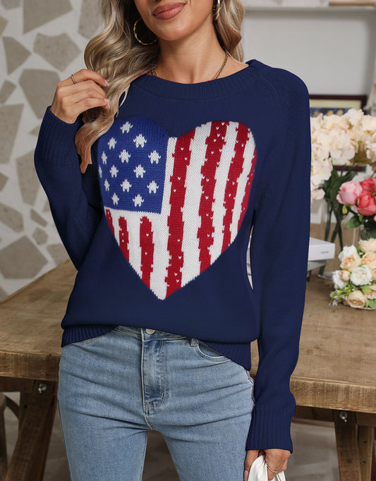 American Flag Love Loose Long Sleeve Round Neck Sweater