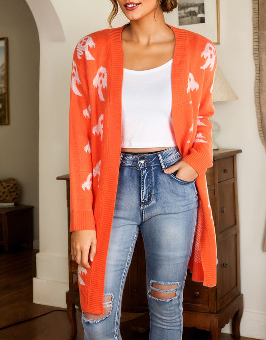 Halloween Long Sleeve Cardigan Ghost Sweater