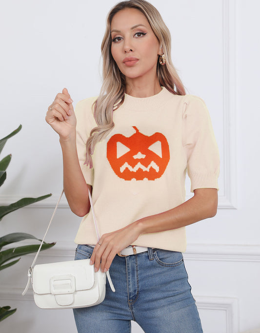 Halloween Pumpkin Ghost Short Sleeve Sweater