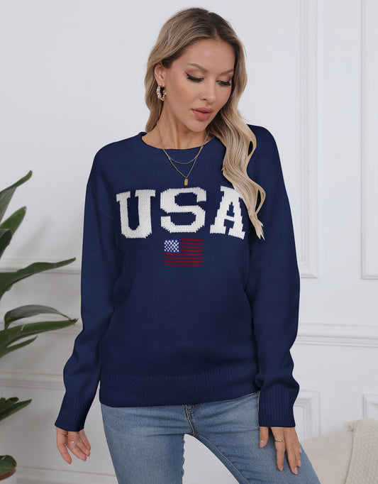USA Flag Loose Long Sleeve Crewneck Sweater